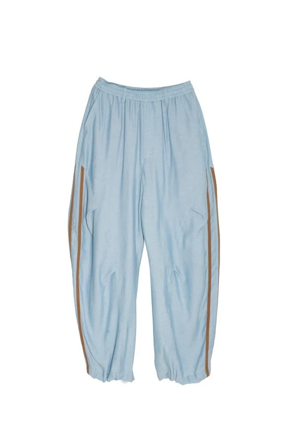 ご予約商品(5月中旬発送)【Nora Lily】Retro Line Track Barrel Pants-Sax Blue x Camel-