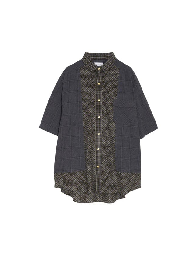 異なるチェックパターンを大胆に組み合わせた、クレイジーパターンのショートスリーブシャツ。