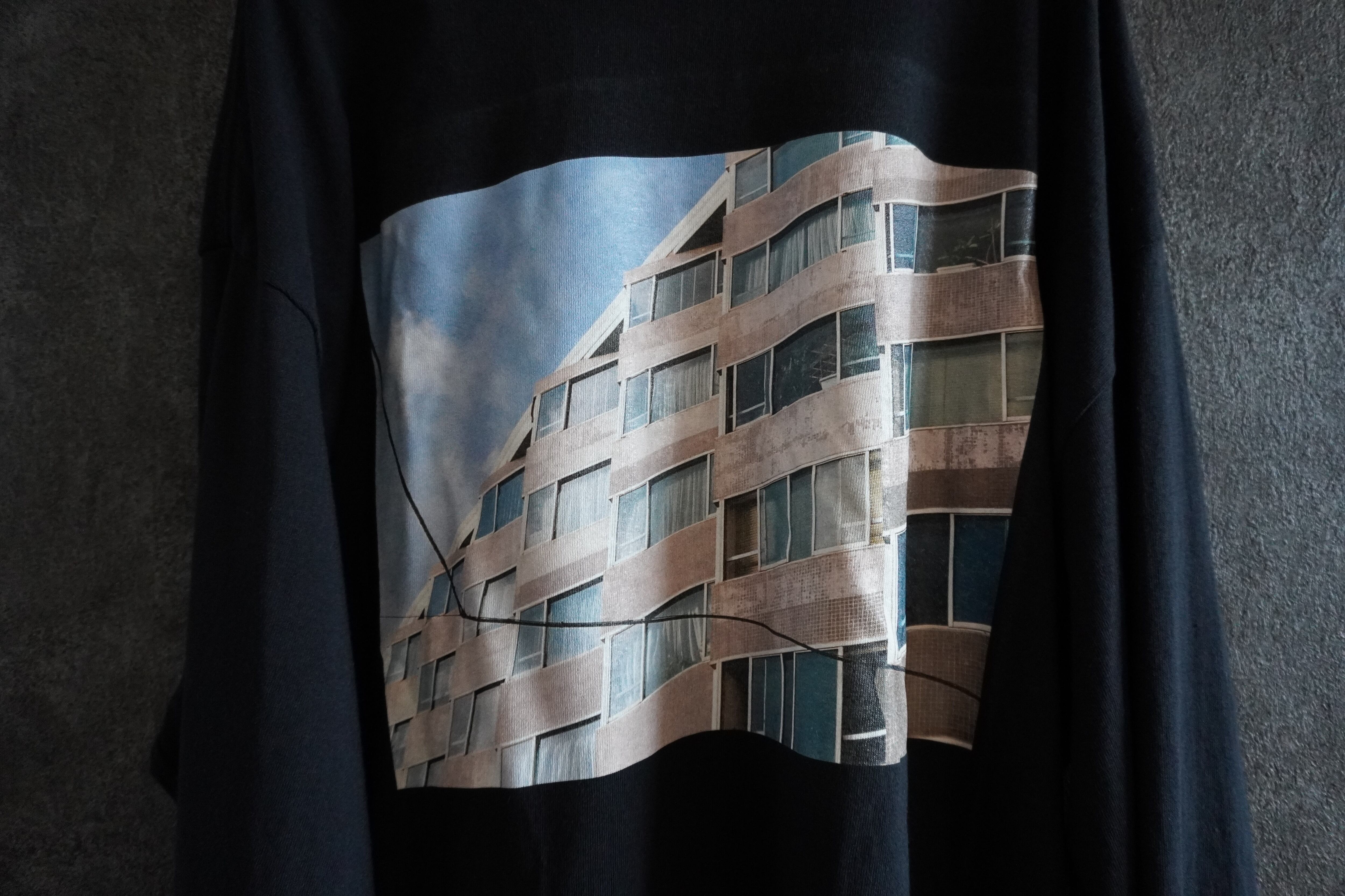 原宿の有名な ヴィンテージマンションが プリントされたフォトロンtee。