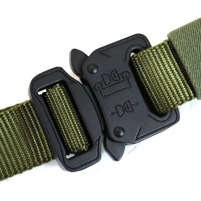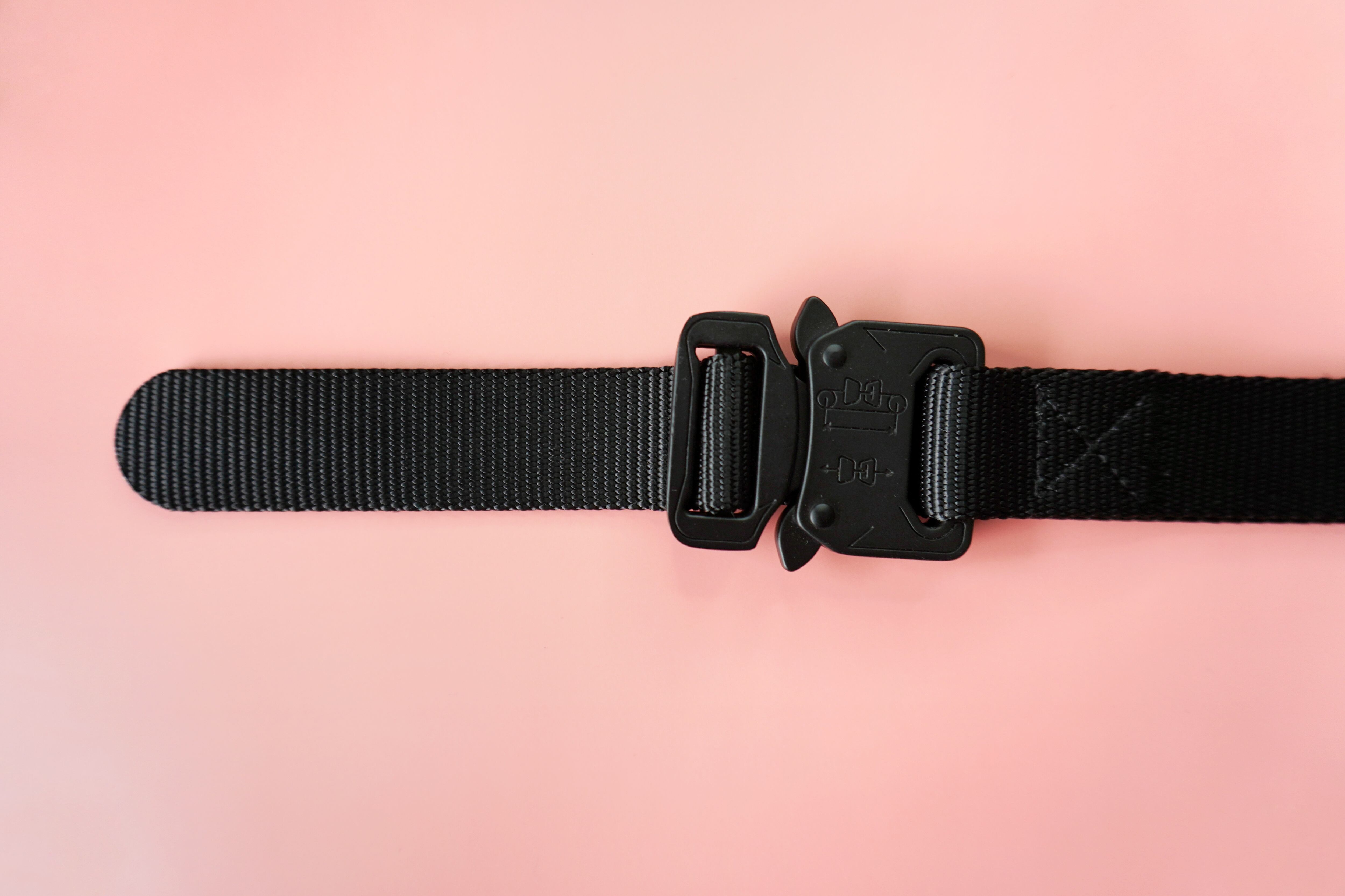 ワンタッチで脱着可能なバックルを使用したベルト。