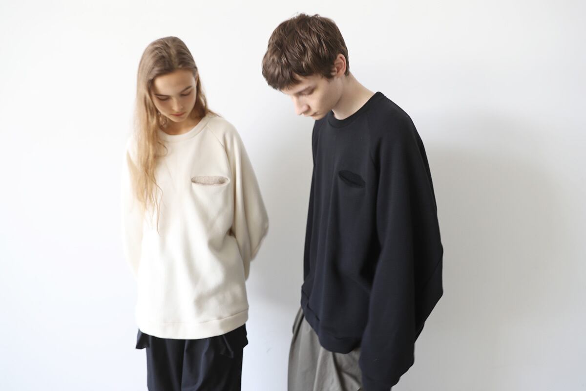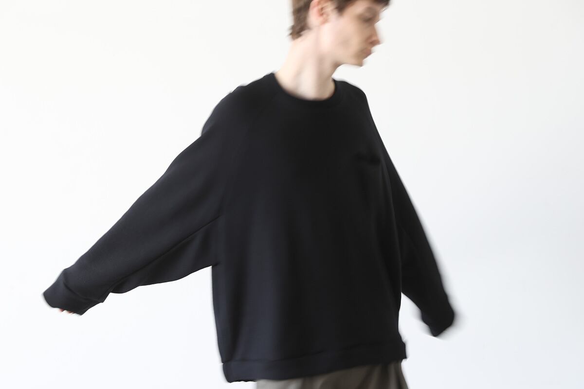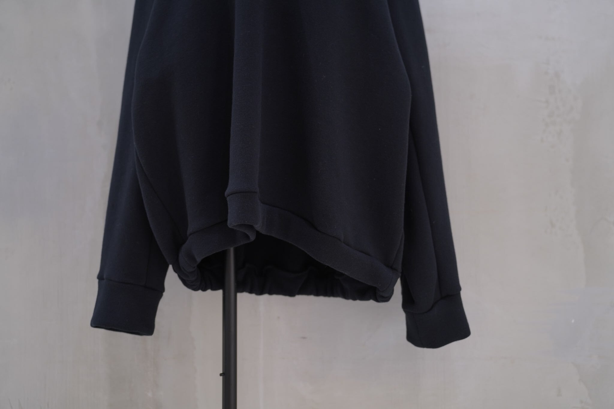 独特なカーブで切り替えたデザインで後ろ裾にゴムを入れることで、背中から裾にかけてバルーンシルエットのスエット。
