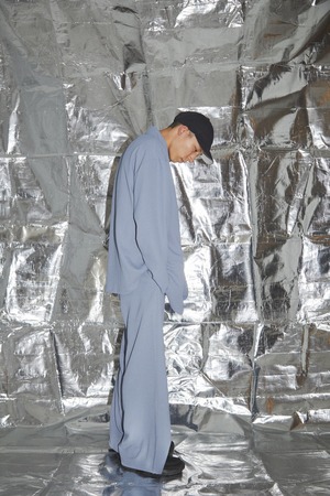 サラッとした着心地でシワになりにくい軽量のオーバーサイズのジャケットになります。ラペルの形も大きくデザインとして効いていて着用した際に良い形に。