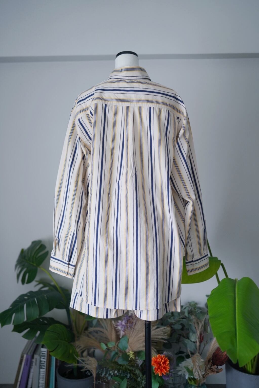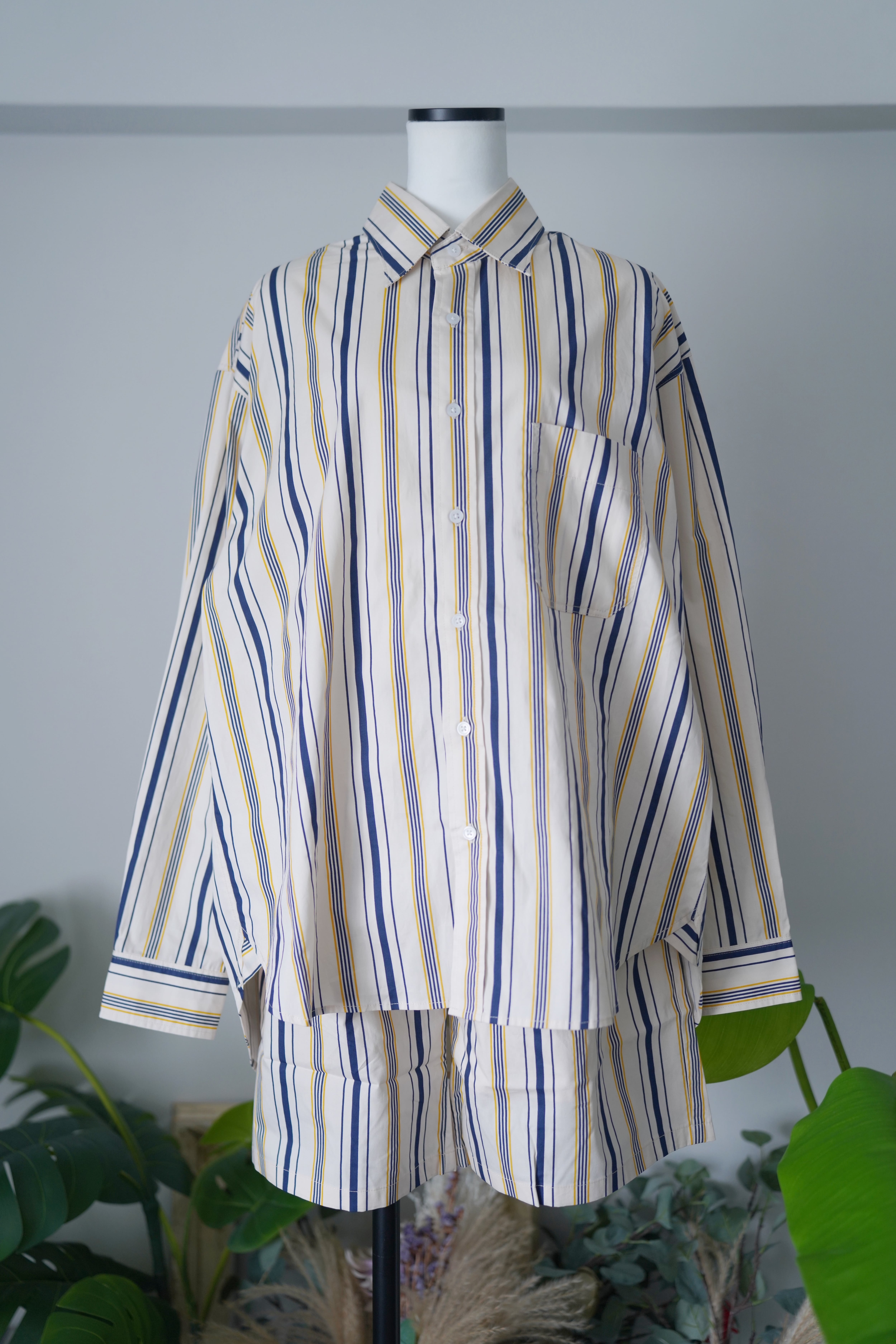 ストライプシャツ。 細かいストライプで子供ぽくならない雰囲気に仕上がっております。