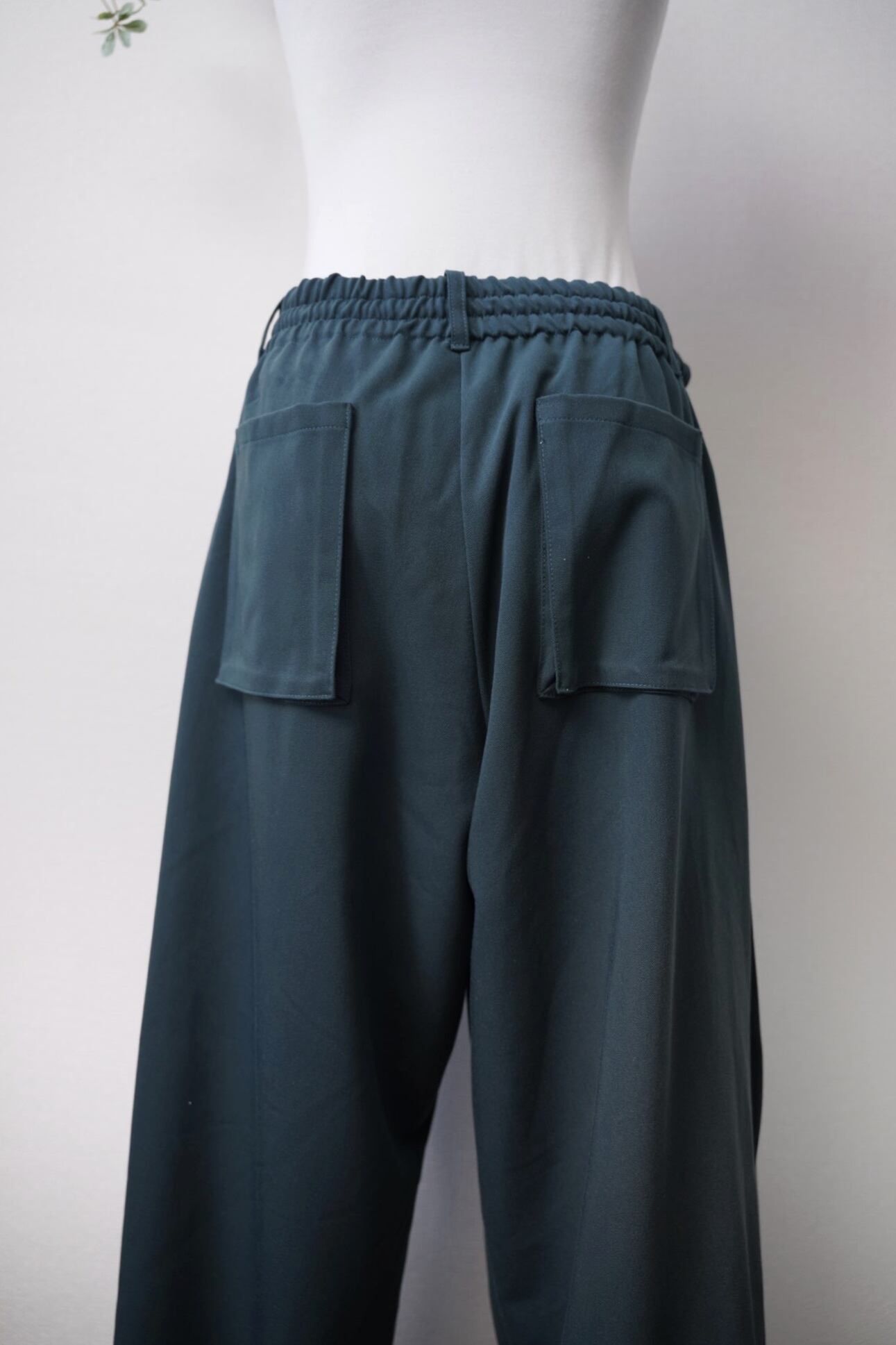 個性と快適さを両立させたアイテムです。たっぷりと施されたタックデザインが立体感を生み出し、動くたびに表情が変わるシルエットが魅力的。ワイドシルエットでリラックス感のある履き心地ながらも、程よい落ち感のある生地が上品さをプラス。