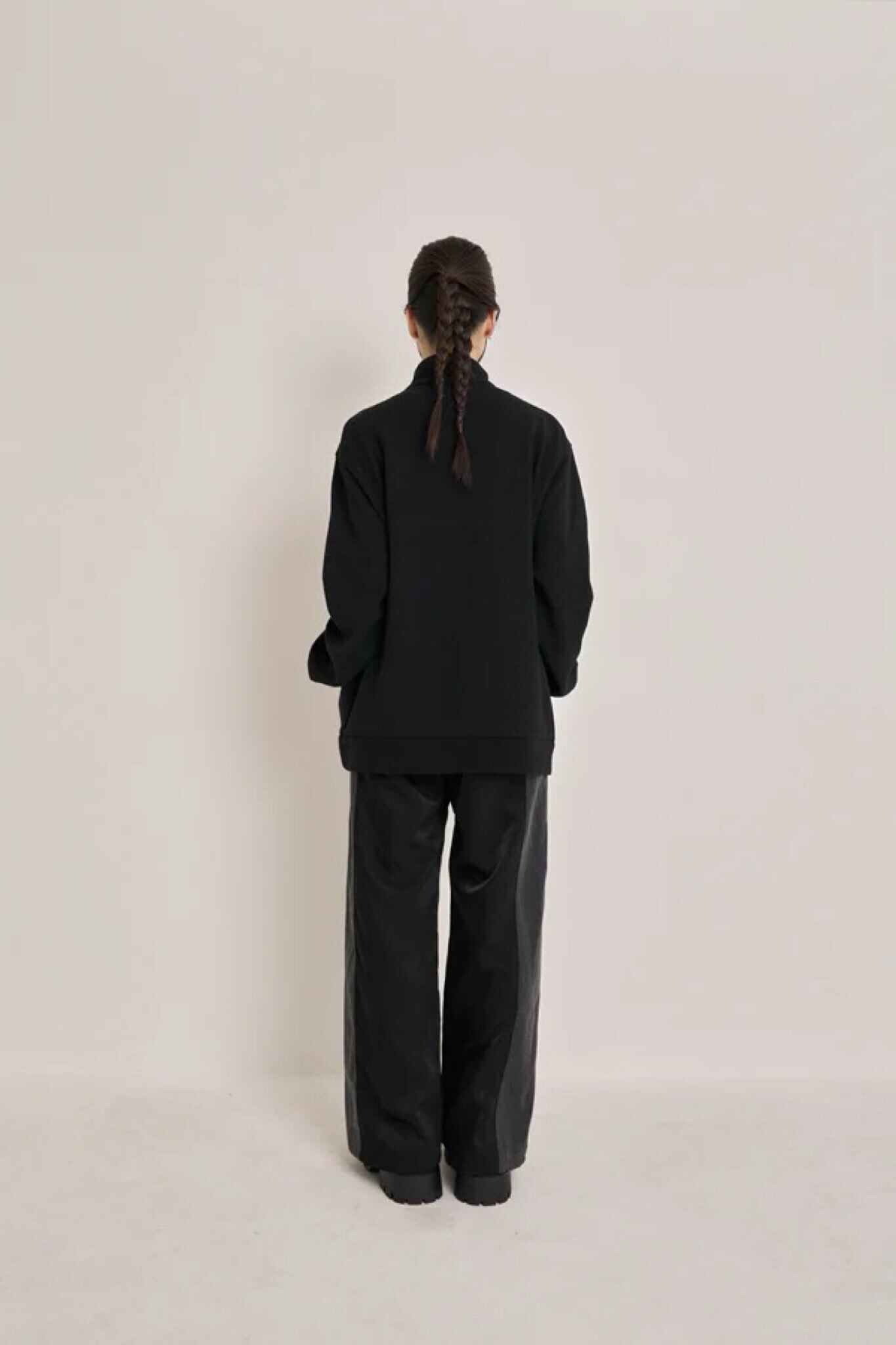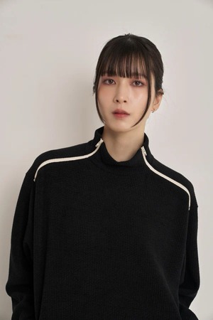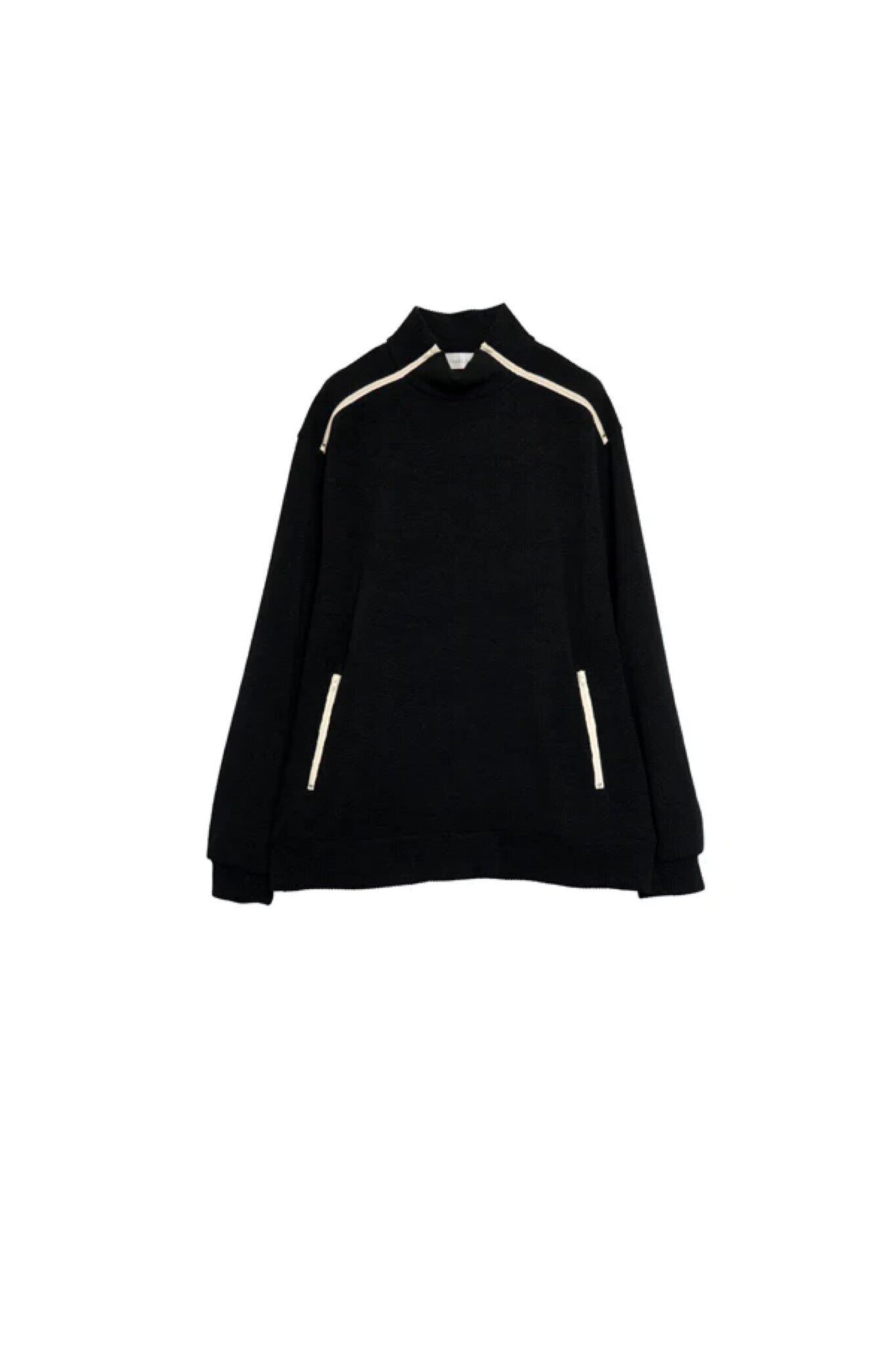 肩から袖にかけて施されたカラージップがアクセントとなり、モードな印象をプラス。ジップを開けることでレイヤードスタイルも楽しめ、気温や気分に応じて着こなしをアレンジ可能です。