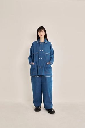 ヴィンテージ感漂うデニム素材にスタッズを施した、クールでエッジの効いたStuds Denim Switching Coverall Jacket。