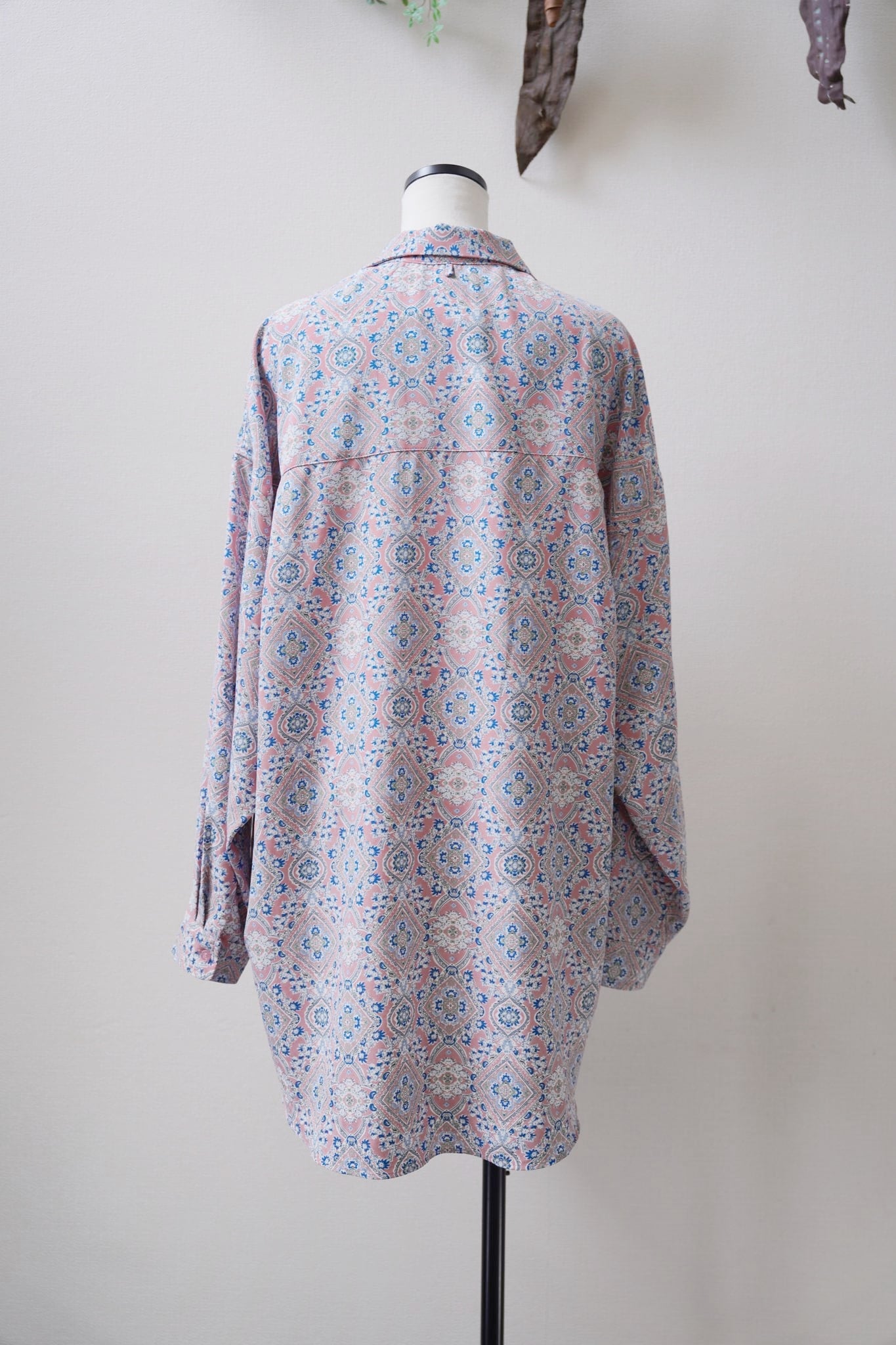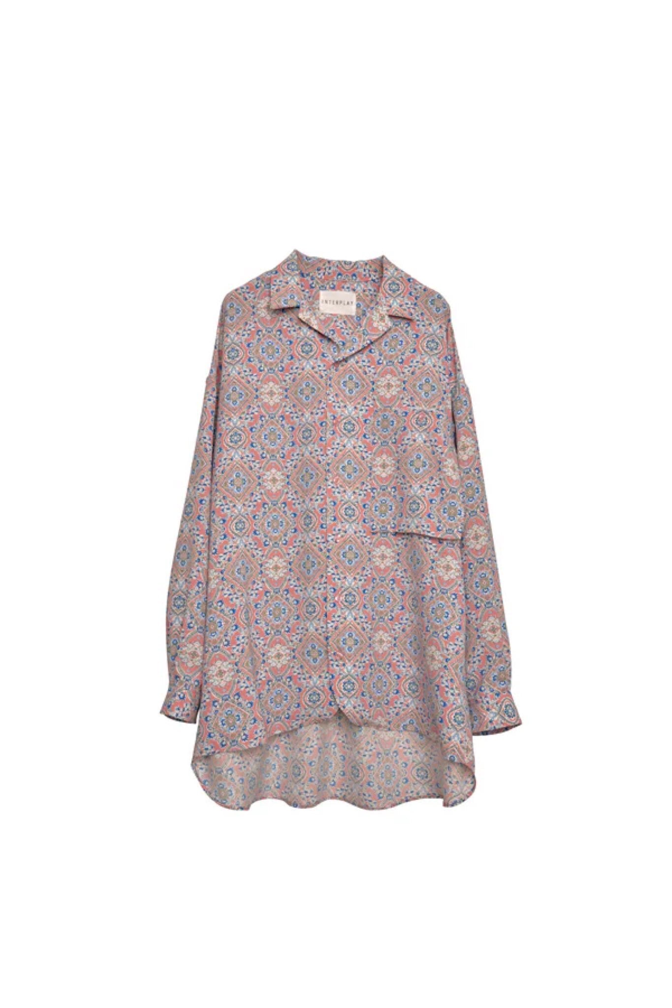 大胆な柄使いが特徴のオープンカラーシャツ。